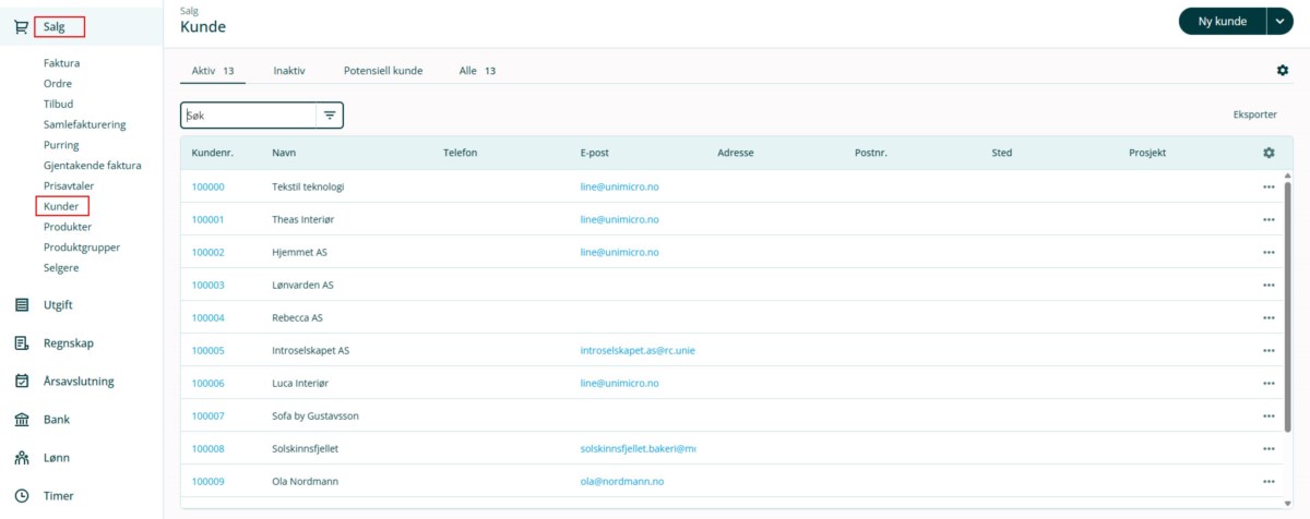 1. Gå til Salg i venstremenyen og velg Kunder.