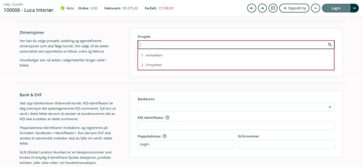 Slik kobler du faktura, ordre eller tilbud mot dimensjon