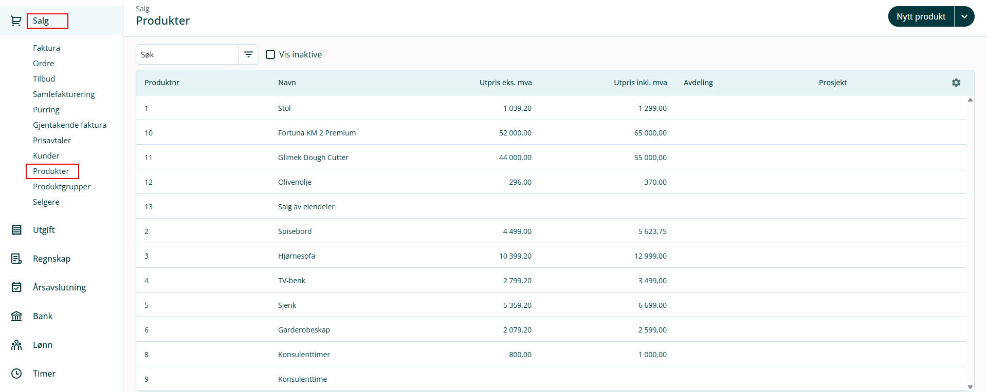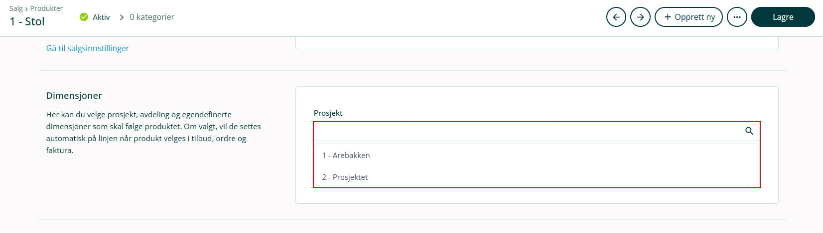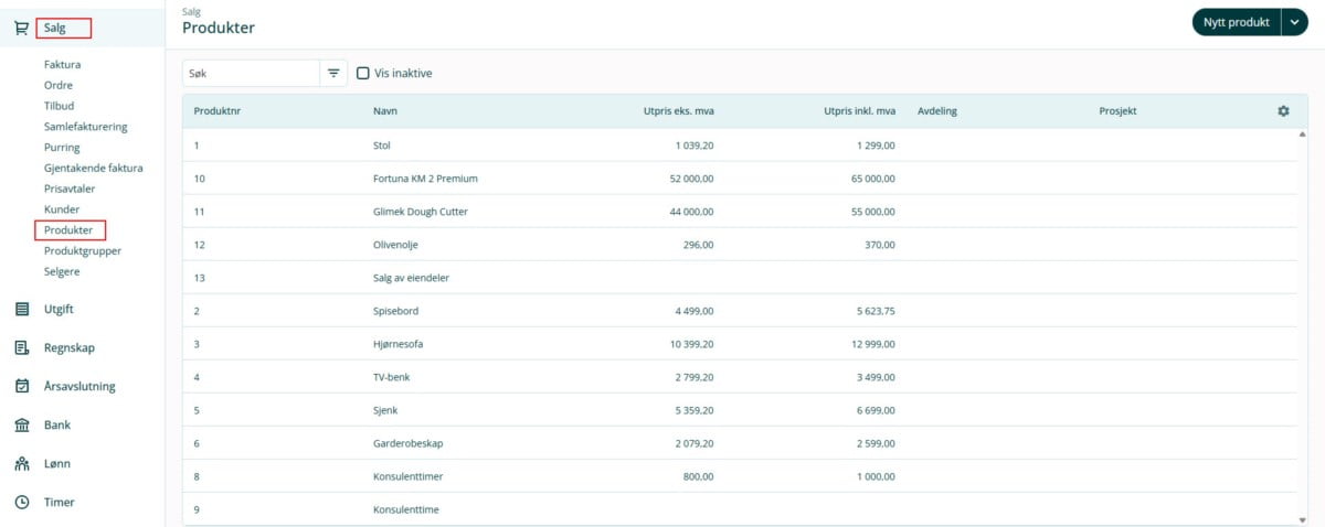 1. Gå til Salg i venstremenyen og velg Produkter.2. Velg aktuelt produkt, eller opprett et nytt produkt.