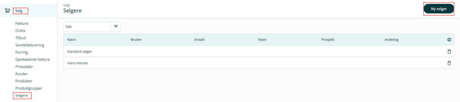 1. Gå til Salg i venstremenyen og velg Selgere.