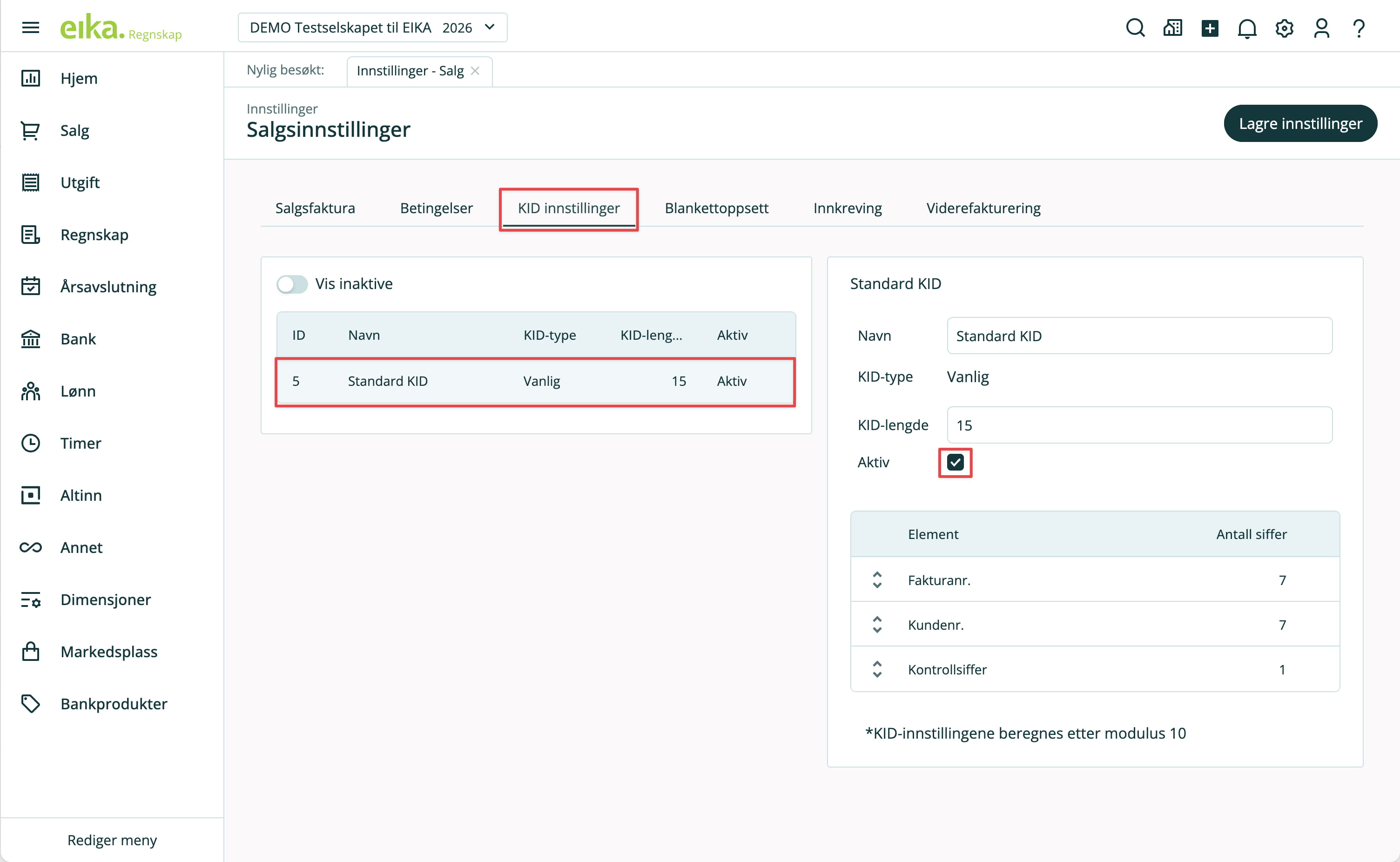 NB: KID-nummer genereres først når fakturaen er sendt.