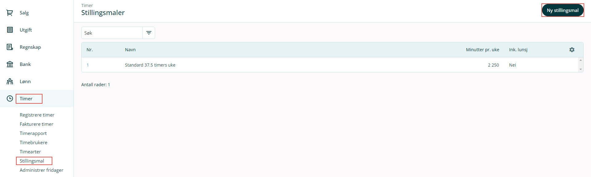 1. Du kan opprette ny stillingsmal ved å klikke på Timer i venstremenyen. Gå til Stillingsmal, og velg Ny stillingsmal.