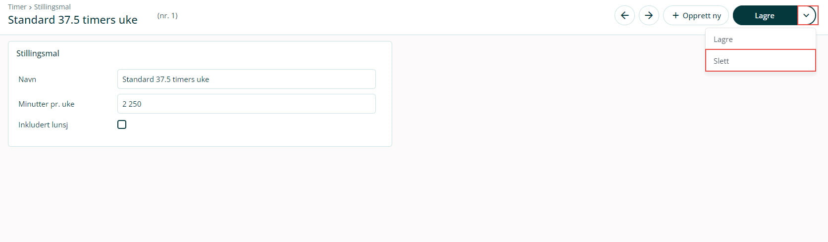 For å slette en stillingsmal, velg Slett fra nedtrekksmenyen til høyre.