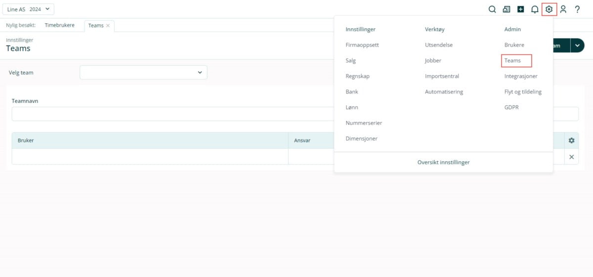 1. Gå til ⚙ Innstillinger i toppmenyen og velg Teams.