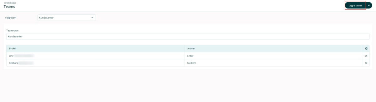 2. Klikk på Nytt team. I feltet for Teamnavn kan du redigere navnet på teamet. Legg til brukere under Bruker og tildel rolle under Ansvar.