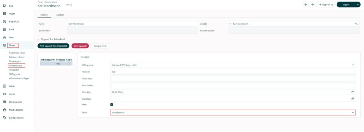 1. Gå til Timer i venstremenyen og velg Personer.2. Klikk på aktuell person som skal kobles mot teamet.