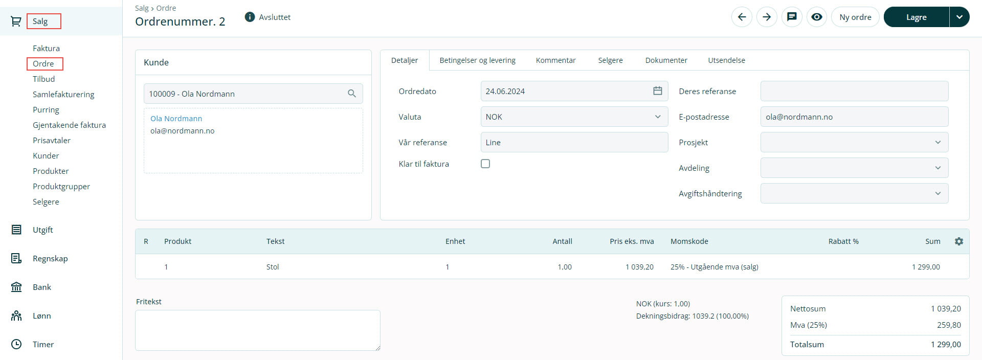 1. Opprett en ordre og legg inn nødvendige opplysninger.