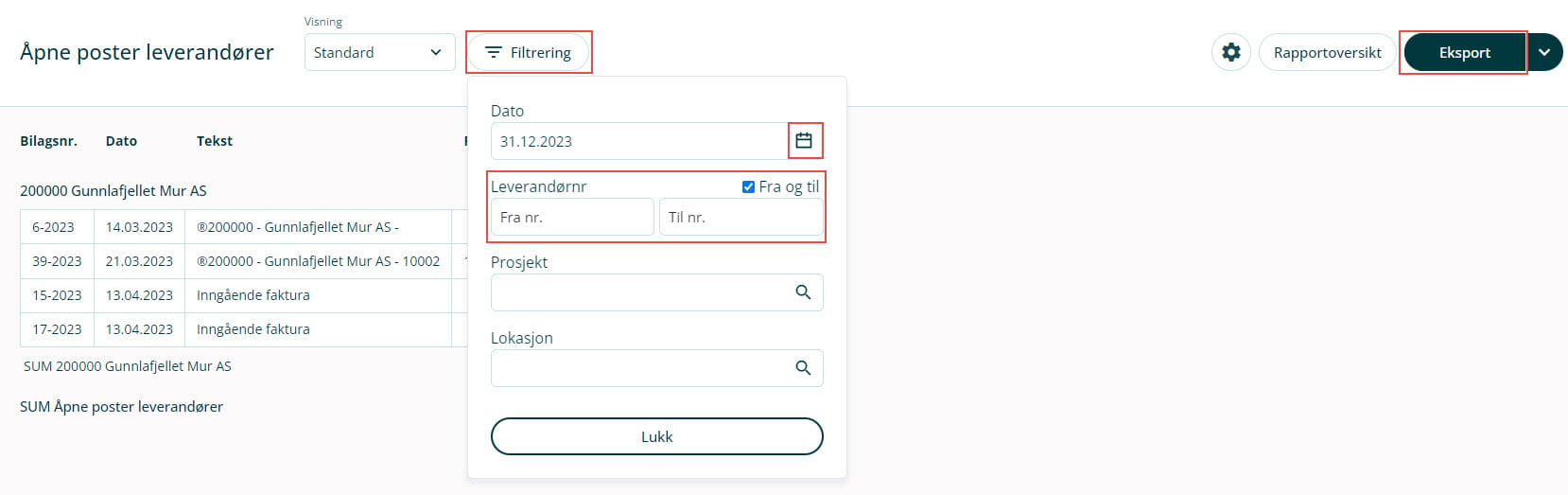 3. Sett hake ved ☑ Fra og til, og velg det intervallet som gjør at du får med alle leverandørene dine.