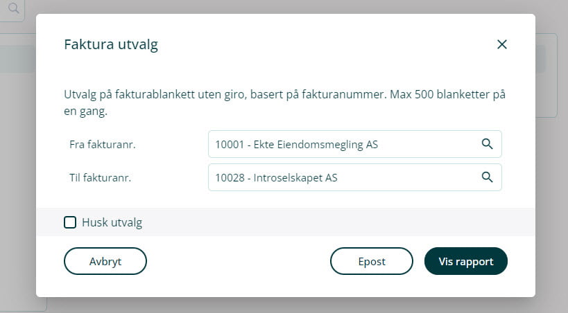 2. Legg inn utvalget av fakturaer.