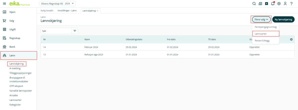 1. Gå til Lønn i venstremenyen. Velg Lønnsarter.