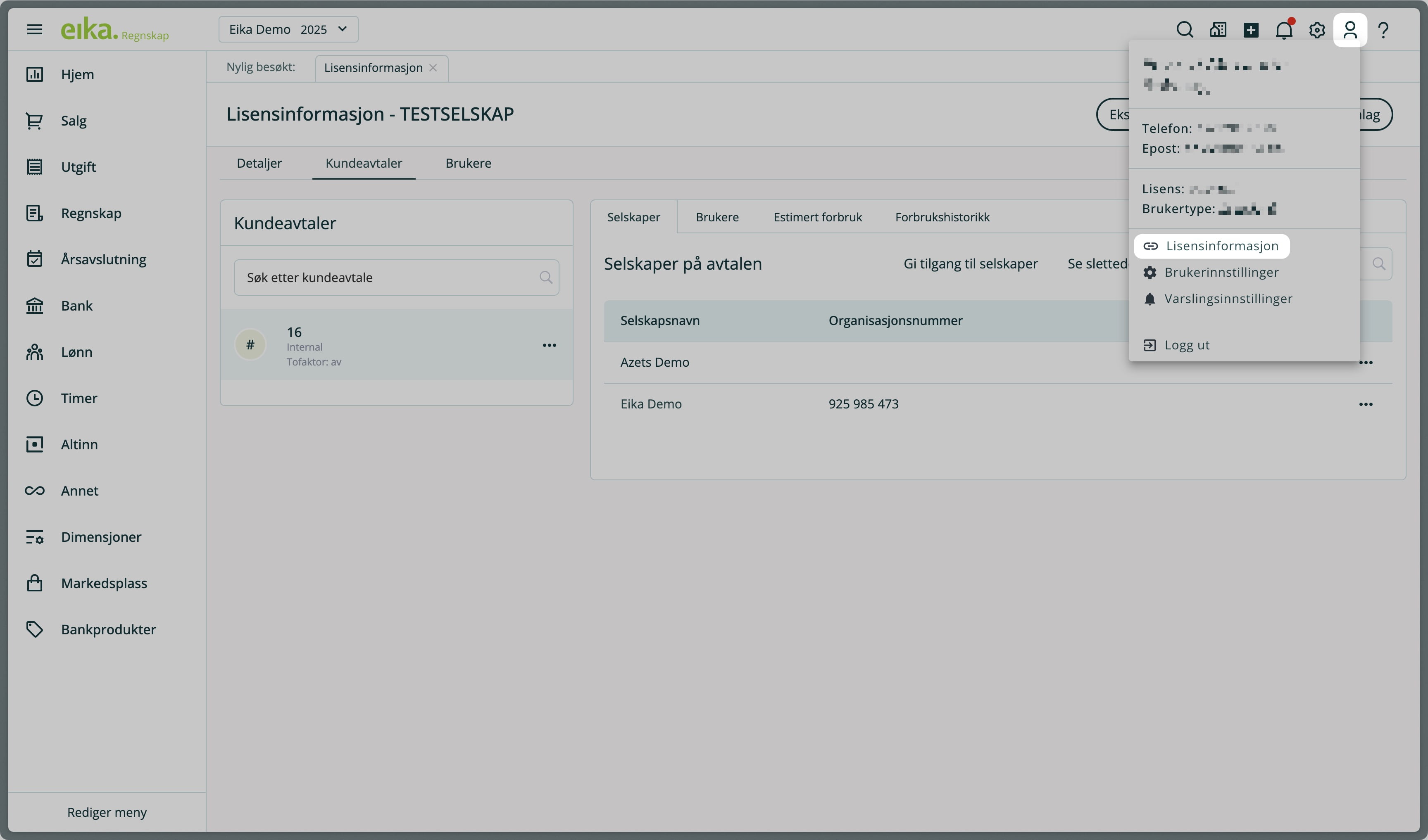 1. Gå til Min profil i toppmenyen, velg Lisensinformasjon og fanen Kundeavtaler.