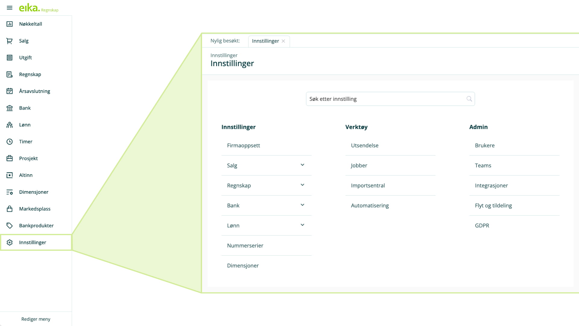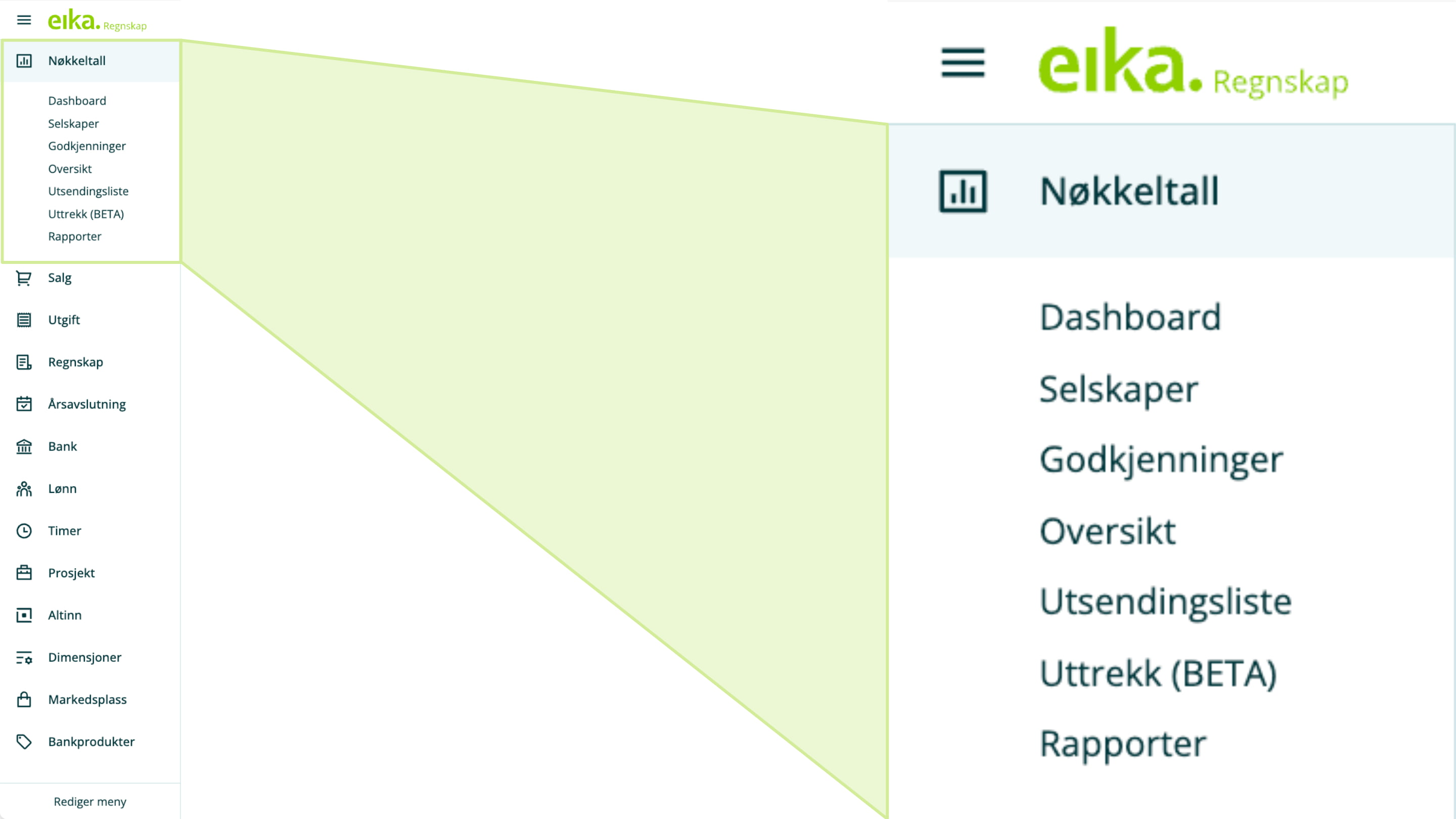 - Gjøre sidemenyen i Eika Regnskap mer oversiktlig for deg.