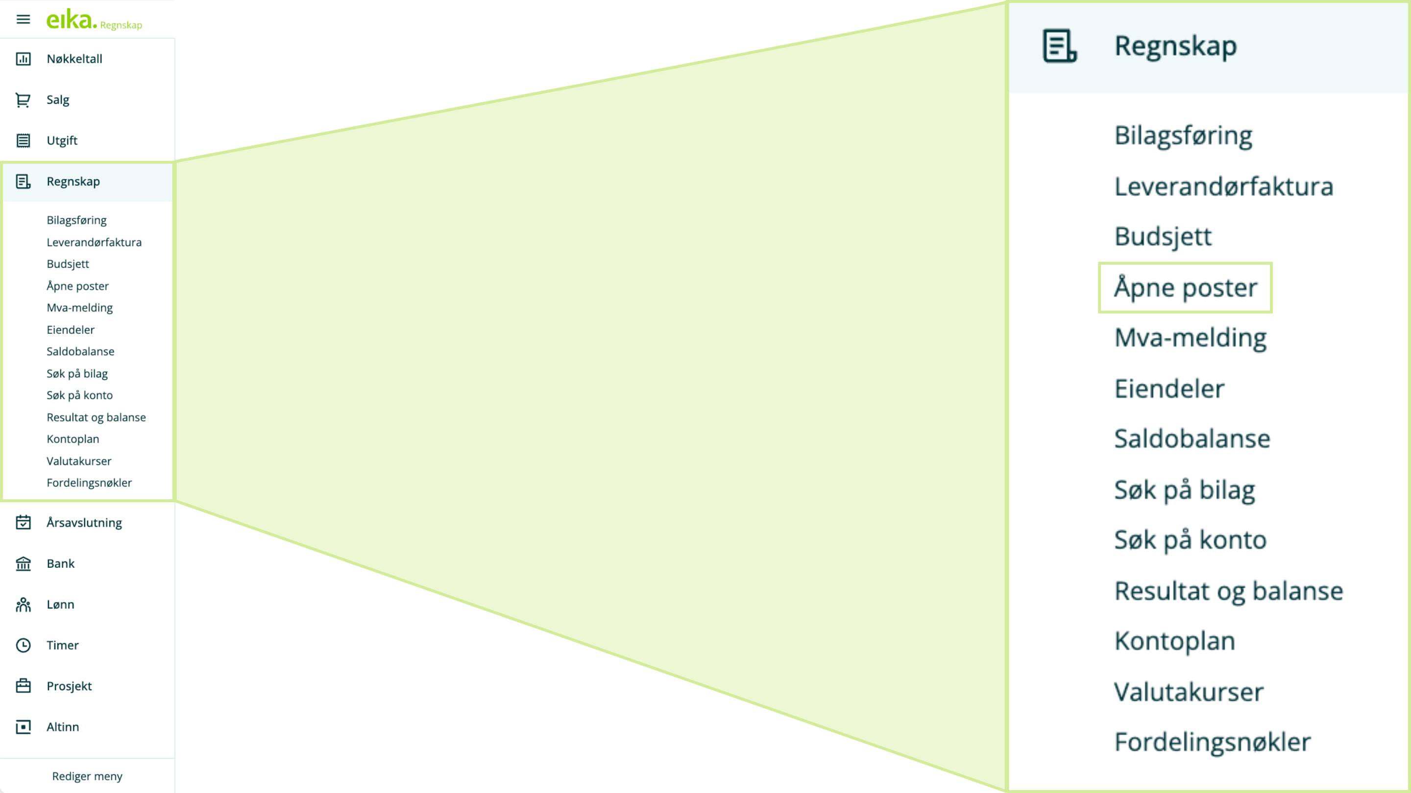 Ny menystruktur i Eika Regnskap